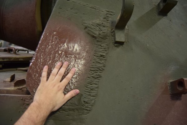 Na kraju tu je debljina oklopa koja se najviše vidi na sastavu prednjeg dela super strukture sa stranicama – vidite na slici moju šaku u poređenju sa oklopom. Ja bih rekao da je moja šaka manje više standardne dimenzije, prosto nisam pri ruci imao nešto drugo što bi lakše pokazalo masivnost tog čeličnog vara. Ukupna širina je naravno 25cm, tako da je ovaj tenk u momentu kada se pojavio na bojištu bio apsolutno neprobojan spreda za bukvalno bilo koje savezničko oružje.