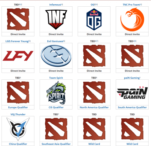 Ekipe Liquid, Secret, Optic Gaming, Newbee i Mineski su odličile da odustanu od učešća na ovom LAN turniru i tako sveli broj učesnika na 9. Njima se pridružila i evropska ekipa Kinguin, koja je trebala biti dio Wild Card mečeva, koji bi odlučivali još 2 učesnika.