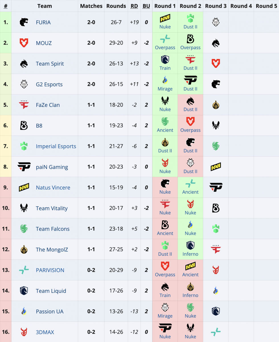 U drugom kolu StarLadder Majora G2 je savladao paiN, Team Spirit je bio bolji od FaZe-a, dok je MOUZ upisao pobedu nad ekipom B8. FURIA je trijumfovala protiv Imperiala, Vitality je slavio nad 3DMAX-om, dok su Falconsi nadigrali Passion UA. The MongolZi su ostvarili važnu pobedu protiv Liquida, a NAVI je bio uspešniji od PARIVISION-a. Svi dueli igrani su u BO1 formatu.