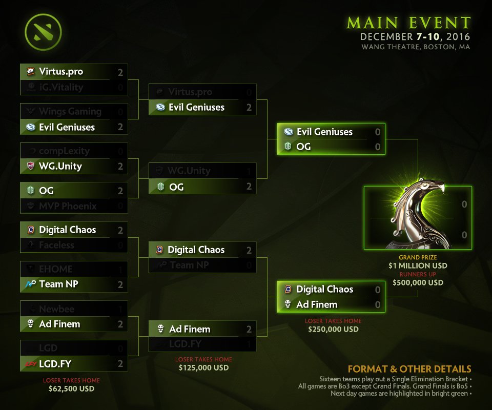 Ad Finem se prvi put našao u polufinalu Valveovog turnira dok je ovo e četvrti put da se Evil Geniuses plasiraju u Top 4.