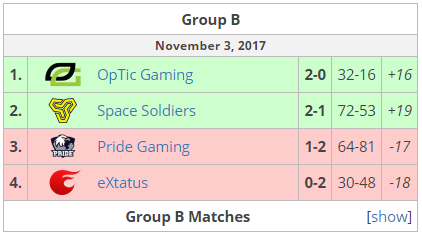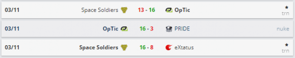 OpTic je potpuno nadigrao poljski PRIDE, pobedivši ih 16:3 na Nuke. Najraspoloženiji za igru bio je Magisk, a dobro ga je pratio mixwell. Usledio je duel za prolaz, između pobednika prva dva meča. Turski Svemirski ratnici bili su odlični na CT strani Train i uzeli 11 rundi. Najbolji u ekipi je očekivano bio sjajni XANTARES. Međutim, Train je mapa gde često viđamo preokrete, koji nije izostao ni ovoga puta. Najzaslužniji za povratak u meč bili su ponovo Danac i Španac, te je Zeleni zid na kraju slavio 16:13 i prošao u plej-of Minora.