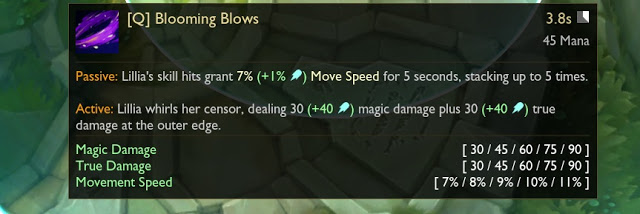 Lillia u krugu oko sebe radi magični damage, s tim što protivnici u spoljašnjem prstenu primaju true damage.