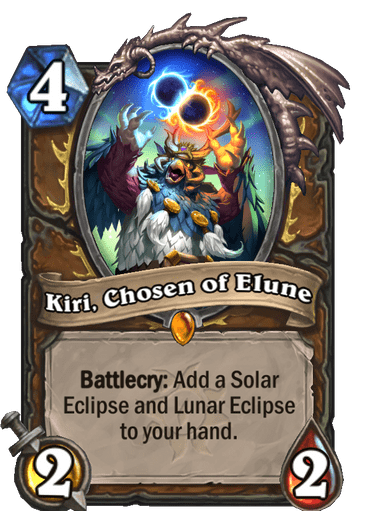 To je 2/2 karta koja košta četiri mane i ima sledeći Battlecry efekat: Dodajte Solar Eclipe i Lunar Eclipse u vašu ruku. To vam naravno ne govori mnogo, ali smo zato tu mi da vam prikažemo šta tačno rade te dve karte. Lunar Eclipe se je spell, koji košta dve mane, radi 3 damage-a minionima i čini da vaša naredna magija ovog poteza košta 2 mane manje. Solar Eclipse isto košta, ali zato čini da se vaša naredna magija aktivira dva puta.