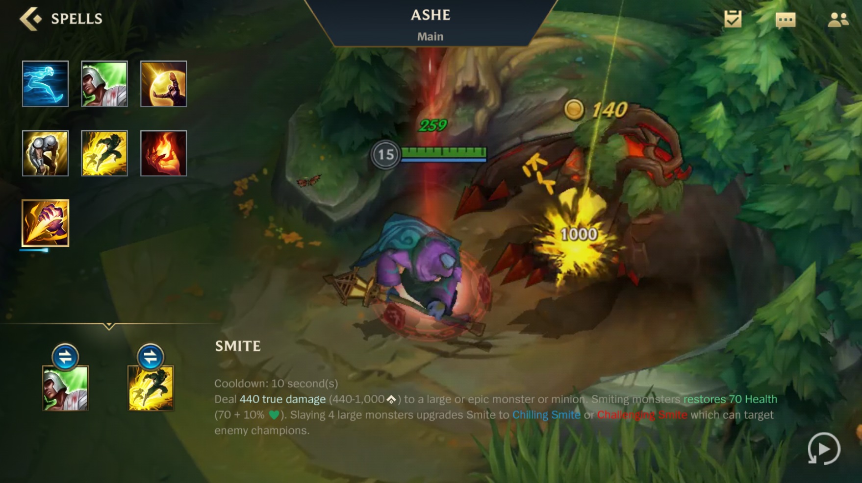 Smajt je magija koju isključivo koriste šampioni koji igraju u džungli. Smajt nanosi demidž monsterima i minjonima a takođe vas i hiluje. Kada ubijete četri velika monstera, magiju možete trajno pretvoriti u Challenging Smite (crveni – protivnik na koga bacite manje vam nanosi demidža) ili Chilling Smite (plavi – neprijatelj za 20% sporiji a vi brži za istu vrednost).