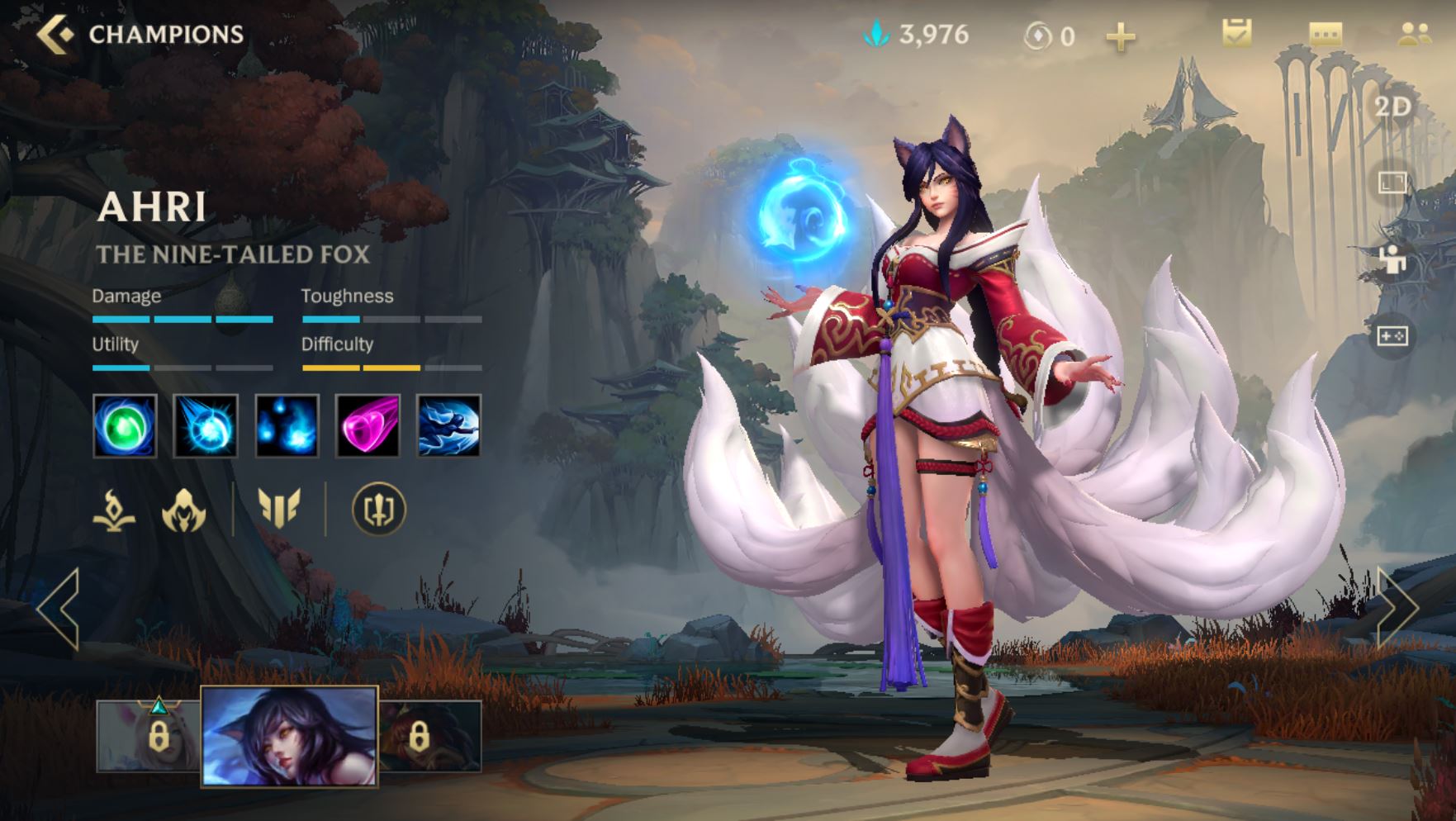 Jedan od prvih šampiona koje možete da otključate ako planirate da igrate ovu poziciju je Ahri. Ovaj šampion je u ranim fazama meča vrlo ranjiv, ali je Ahri i svestran karakter od koga možete da napravite Mejdža koji lako kontroliše protivnika pomoću njene treće Charm magije i njenog ultimejta Spirit Rush koji vam daje mobilnost kakvu nema mnogo šampiona u igri. Možete da napravite i neku vrstu Asasina ako se koncentrišete na ajteme koji vam daju AP (ability power). Njena prva magije je odlična za čišćenje kripova na lejnu a koncentrišite se da Fox-Fire magiju koristite kada pogodite protivnika sa trećom sposobnosti.
