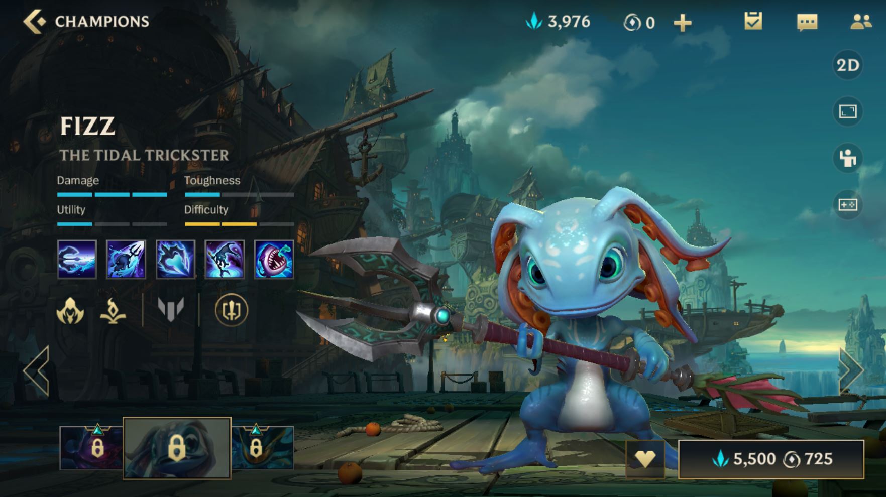 Veoma je teško kazniti Fizz igrače iako promaše svoj kombo, a ujedno je jedan od šampiona koji može da nanese najveći demidž u Wild Rift-u. Fizz ima dve magije koje mu pomažu da lako ulazi i izlazi iz tuča, a ima i odlične magije za jedan na jedan situacije koje će rešiti svakog ”mekanijeg” šampiona. Obavezno pogodite bitne mete sa vašim Chum The Waters ultimejtom koji razdvaja vašu metu i druge protivnike i nanosi dobar demidž. Dok ste još na lejnu možete terati protivnika sa kombinacijom udaraca i Rending Wave-a, a kada stvari krenu nizbrodo Playful/Trickster je magija koja vas može izvući iz teških situacija, a možete je koristiti i za inicijaciju.