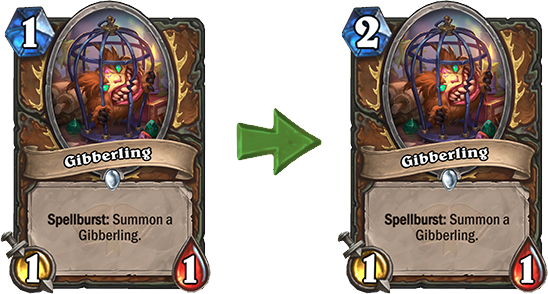 Token Druid je od izlaska Forged in Barrensa postao najbolji Druid špil, pa je na trenutke bio čak i prejak, zbog čega je došao red i na Gibberlinga, koji će od sada koštati 2 mane. Iako će ovo na neki način malo usporiti ovaj špil i onemogućiti ludilo već u prvom potezu, plašim se da ovo može biti preveliki nerf.