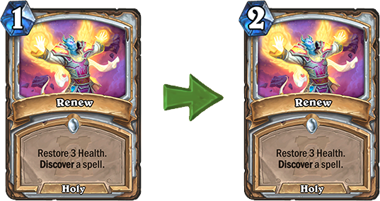 Druga Priest karta koja je oslabljena je Renew, koji će sada koštati 2 mane. Za kartu koja vam daje 3 HP-a, a pritom i donosi novu kartu, cena od 1 mane je stvarno premalo, zbog čega se još jednom slažem sa developerima da su uradili dobar posao.