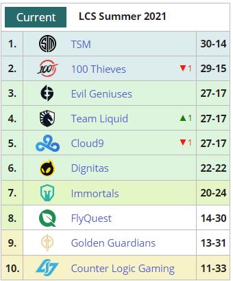 U LCS ligi poznato je sedam učesnika playoff faze, a ekipe FlyQuest i Golden Guardians se u današnjim mečevima bore za osmu poziciju i svoje mesto u playoff-u. Najzanimljiviji mečevi će biti između 100 Thieves – Evil Geniuses i Cloud 9 – Team Liquid, a rezultati ovih mečeva će kompletirati raspored na tabeli koji možete pogledati u nastavku.