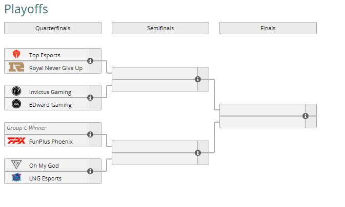 Timovi Royal Never Give Up, EDward Gaming, FunPlus Phoenix i LNG Esports počinju ovo takmičenje iz plej-of faze (top 4 u LPL 2021 sezoni) , a već znamo gotovo sve parove četvrtfinala. U nastavku pogledajte koje serije ćemo gledati na početku nokaut faze.