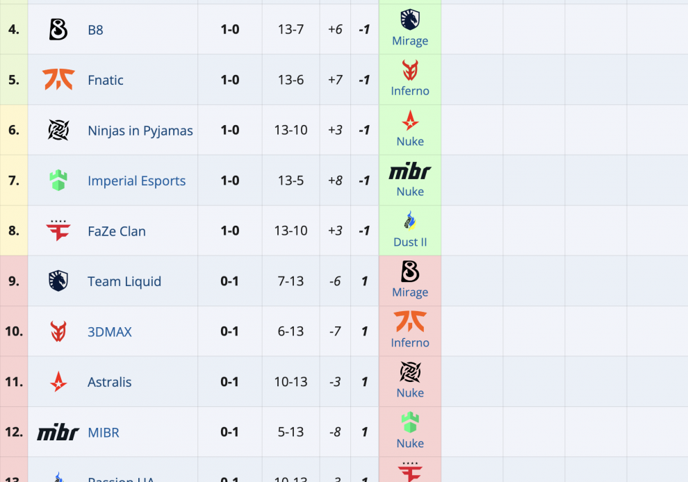 Tabela druge faze trenutno izgleda ovako (po grupama pobeda/poraza koje su ostvarene u prvom kolu).