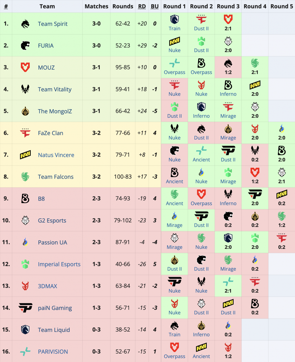 U odlučujućim mečevima za mesto u plej-ofu, NAVI je savladao B8, FaZe je bio bolji od Passion UA, dok je Falcons trijumfovao nad ekipom G2. Ovim rezultatima kompletiran je spisak od osam timova koji će se boriti za trofej u Budimpešti.